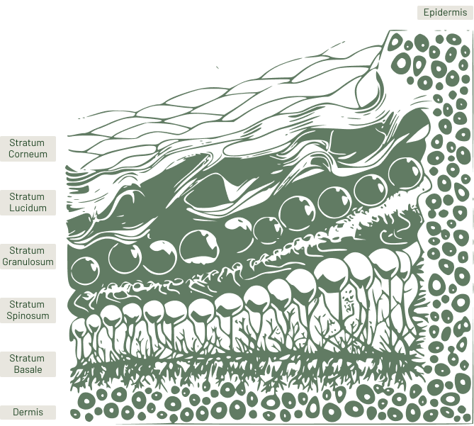Skin care products focus on the Epidermis, the outermost layer of the skin, which is composed of 6 levels.
